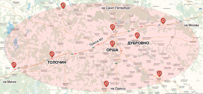 Работаем по трассе М1 в районе городов: Толочин, Орша, Дубровно
